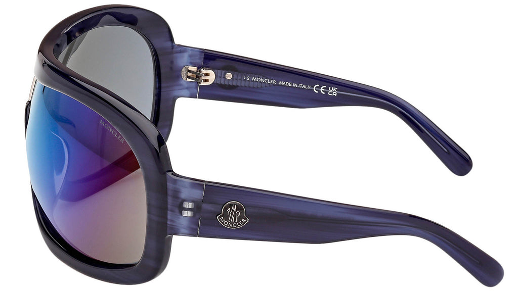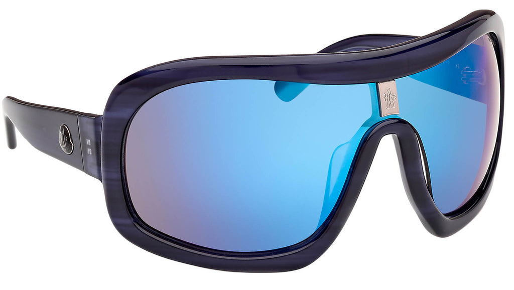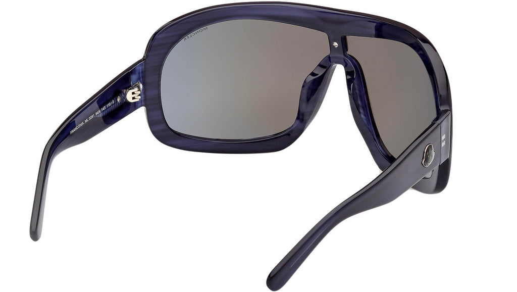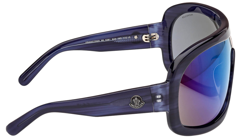 Gli occhiali da sole Franconia modello ML0281 64X di Moncler sono una affermazione di stile davvero audace. Le lenti oversize si abbinano perfettamente a una spessa montatura shield in acetato lucido, che crea un'estetica audace e di grande impatto: frontale e aste sono realizzati in acetato e la montatura, in un'elegante tonalità blu, si abbina perfettamente alle lenti a specchio. Quale finitura perfetta, le grandi aste sono ornate dal distintivo logo Moncler. I Franconia sono elegantemente presentati in un astuccio trapuntato di boudin, accompagnato da un panno per la pulizia delle lenti.