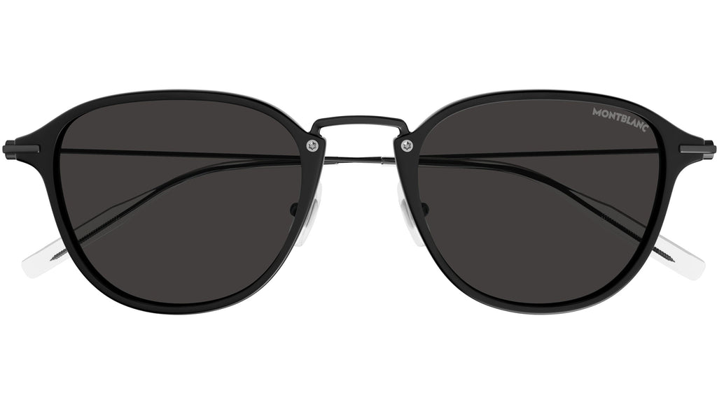 Occhiali da sole Montblanc Snowcap modello MB0155S in iniettato panto, codice colore 009 nero semiopaco con aste in nero e lenti color grigio tinta unita. Rivenditore autorizzato Montblanc online. Gli occhiali vengono consegnati con custodia e accessori originali e sono coperti dalla garanzia ufficiale di 12 mesi del produttore.