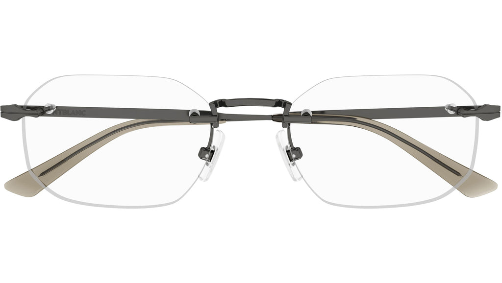 Occhiali da vista Montblanc modello MB0307O rectangle linea Nib in metallo, codice colore 002 rutenio scuro lucido con aste color rutenio e lenti demo.