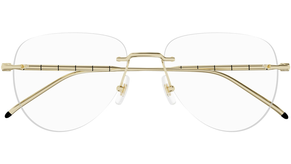 Occhiali da vista Montblanc modello MB0312O aviator linea Meisterstück in metallo, codice colore 002 oro chiaro lucido con aste color oro e lenti demo.