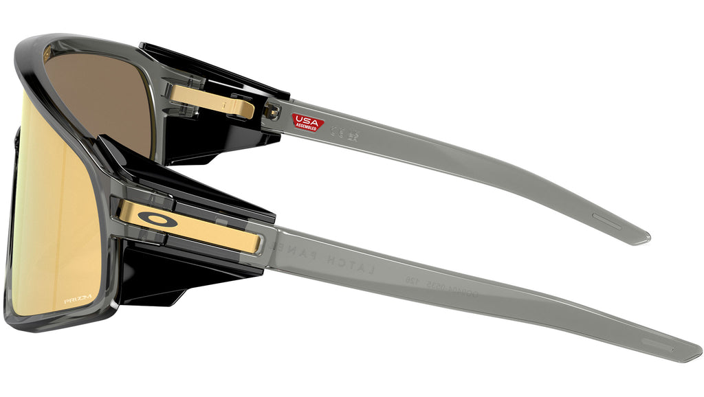 Occhiali da sole Oakley Latch Panel modello OO9404 codice colore 05 grigio fumo con lenti oro polarizzato prizm.