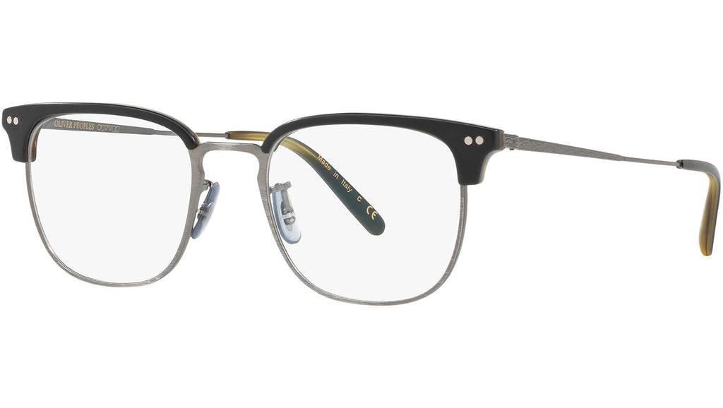 Moderna montatura combinata da uomo, di forma squadrata in acetato ultrasottile, caratterizzata da perni funzionali e super leggerezza.