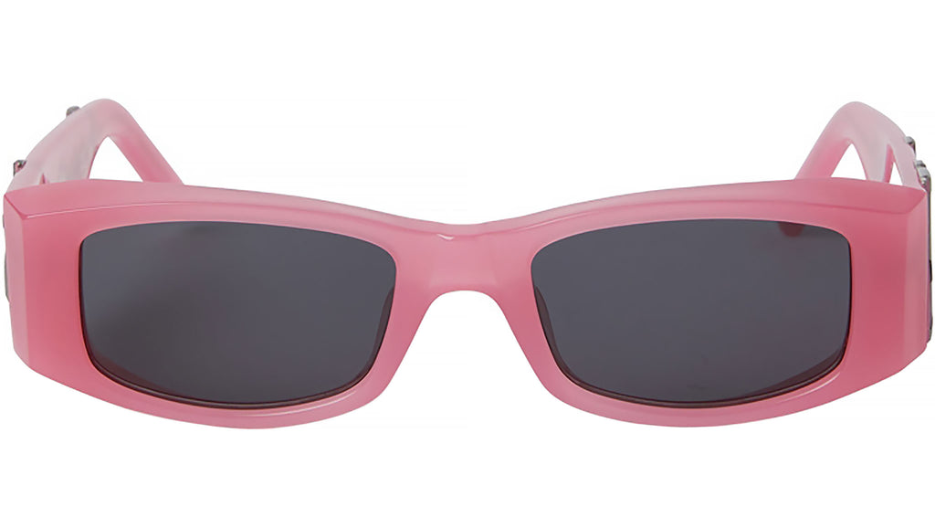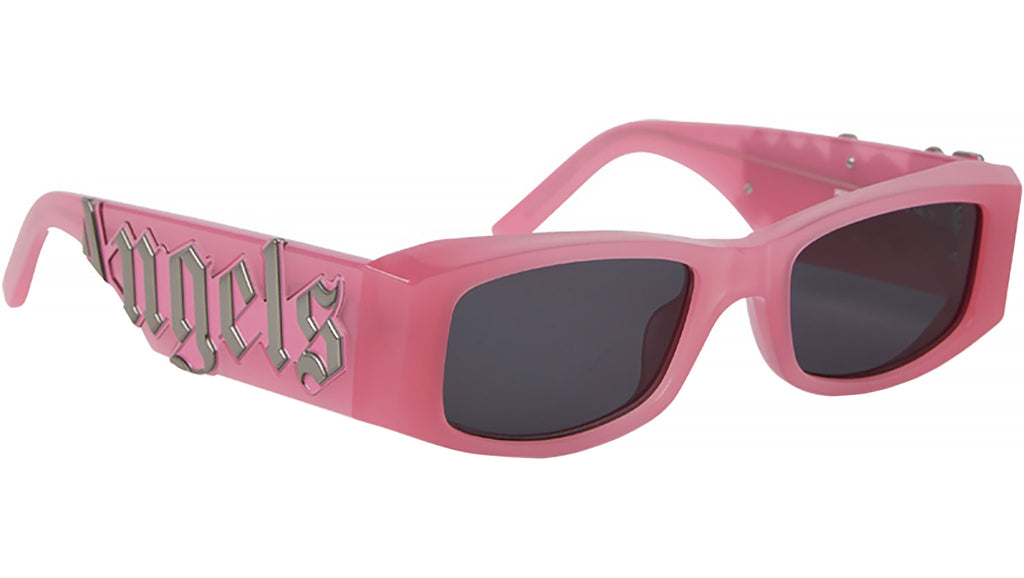 Angel di Palm Angel nasce da un sottile richiamo agli anni 90, che si abbina ad un'attitudine tutta rock. Angel presenta una struttura solida, dove il maxi logo Palm Angels con l'iconico carattere goth del marchio, caratterizza costantemente la personalità, scontrandosi con l'ordinario. La forma è grintosa e rettangolare, caratterizzata dal logo affermativo presente sulle aste. La montatura è interamente realizzata in acetato e gioca sui contrasti e sul volume. La stecca è adornata con metallo galvanizzato sopra il logo in rilievo. Una montatura statement, per uno stile rock anni '90.