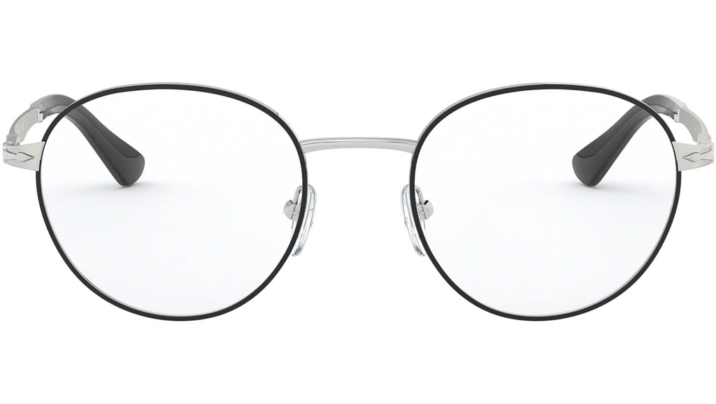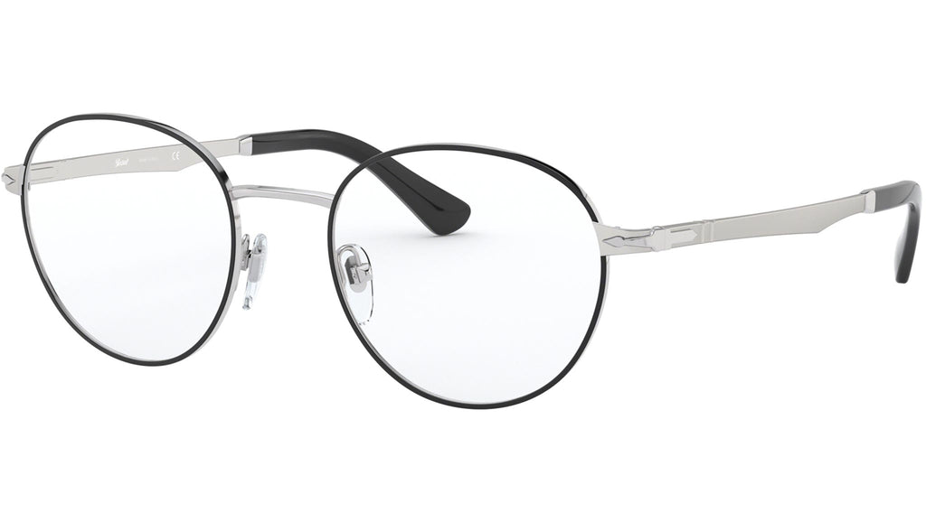 Occhiali da vista Persol modello PO2460V codice colore 1074 con montatura full rim in metallo color argento e nero e lenti demo.