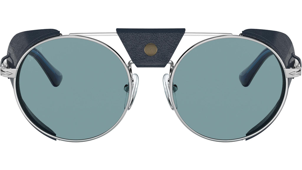 Occhiali da sole Persol modello PO2496SZ codice colore 1139P1 con montatura color argento full rim metallo e lenti in vetro color verde.