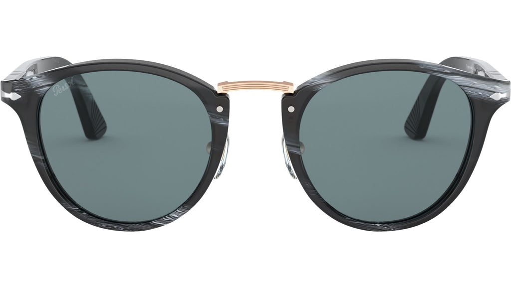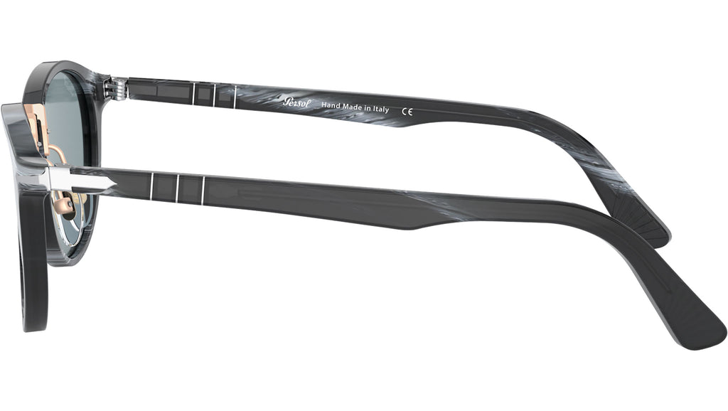 Occhiali da sole Persol modello PO3108S codice colore 111456 con montatura color nero striato full rim acetato e lenti in crystal color blu.