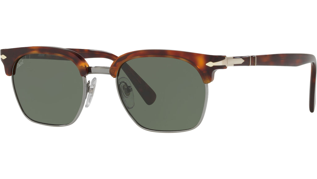 Occhiali da sole Persol modello PO3199S codice colore 24/31 con montatura color avana full rim acetato e lenti in crystal color verde.