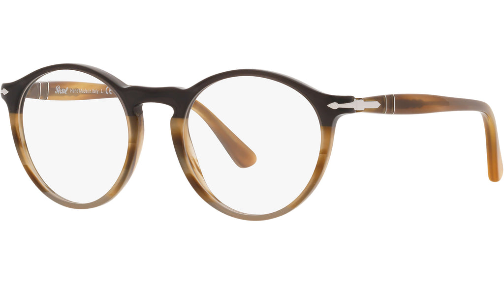 Occhiali da vista Persol modello PO3285V codice colore 1135 con montatura full rim in acetato color nero / marrone striato / grigio e lenti demo.