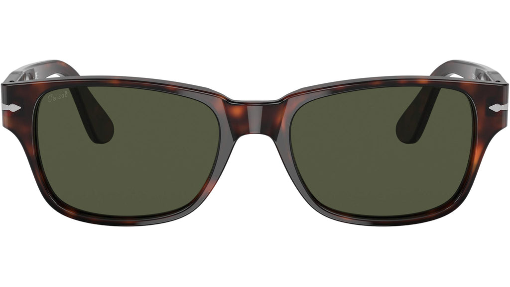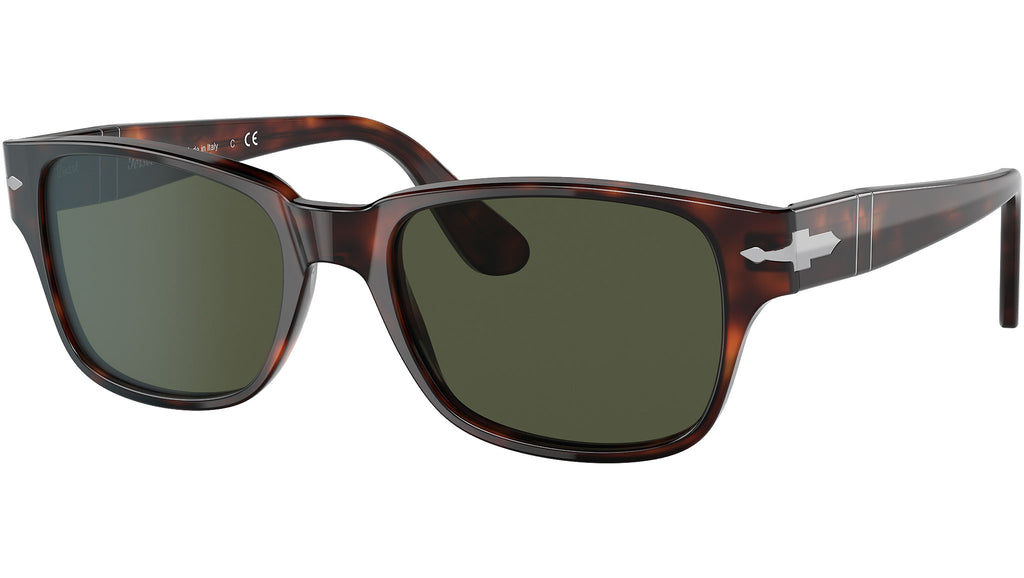 Occhiali da sole Persol modello PO3288S codice colore 24/31 con montatura color avana full rim acetato e lenti in vetro color verde.