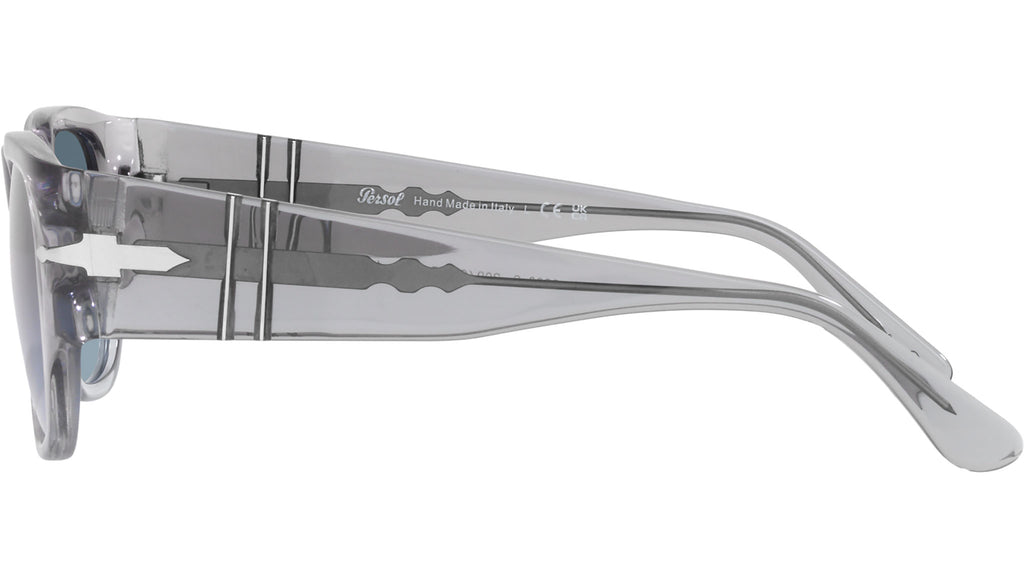 Occhiali da sole Persol PO3308S codice colore 309/Q8 grigio trasparente in acetato con lenti color blu. Persol fonde in modo armonioso estetica e tecnologia. Dedica un'attenzione meticolosa a ogni dettaglio, nel coniugare stile distintivo e soluzioni pratiche. Guidata da una passione incrollabile per il perfezionamento delle abilità artigianali e da una ricerca incessante in innovazione, Persol incarna la vera qualità italiana. Il suo nome evocativo significa 'per il sole', testmonianza viva del ricco patrimonio di maestria superiore ed eccellenza, all'apice della manifattura italiana artigianale. Rinomata per il suo design senza tempo e per la sua arte nel creare occhiali unici, il marchio è diventato una delle scelte più amate nell'ambito del cinema.