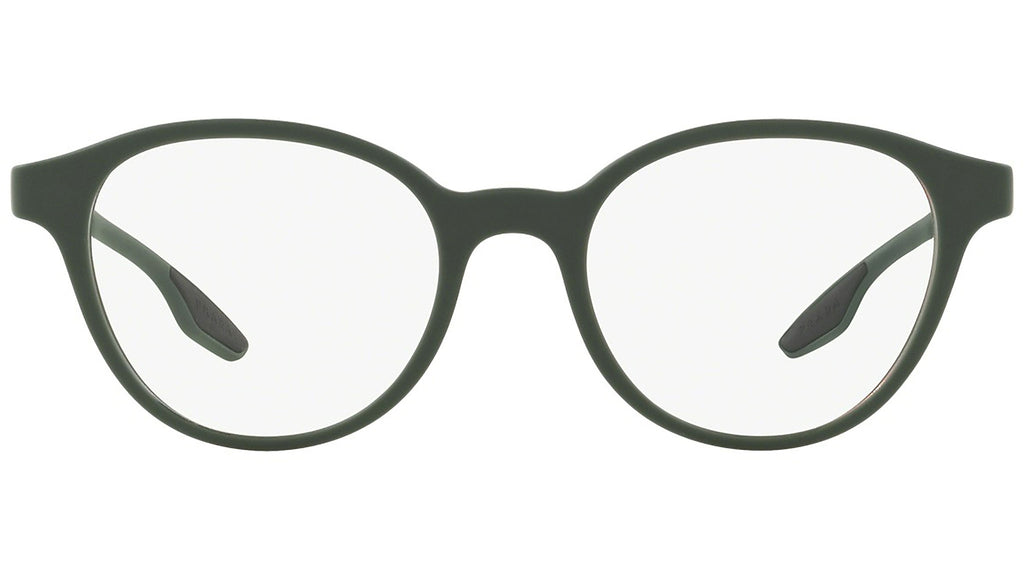 Prada Linea Rossa Eyewear Collection model PS 01MV, green rubber frame variant, color code UFI1O1. A new perspective, a fusion of sportswear and contemporary elegance: the Prada Linea Rossa Eyewear Collection conveys an everyday casual style with all the quality and craftsmanship of the Prada brand.