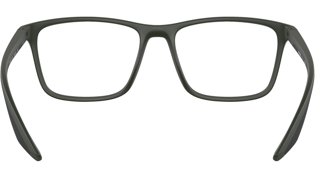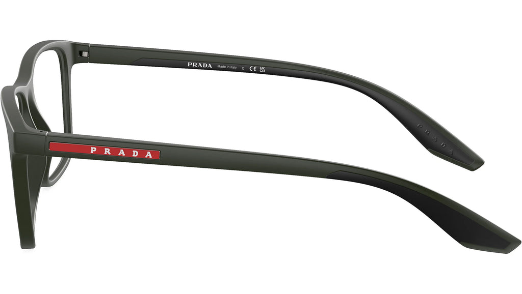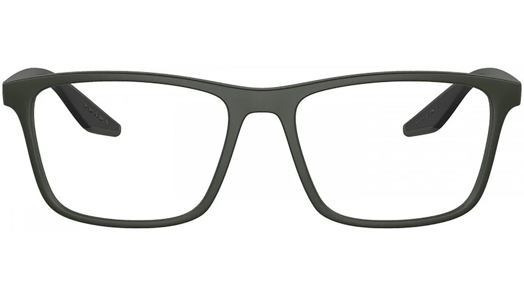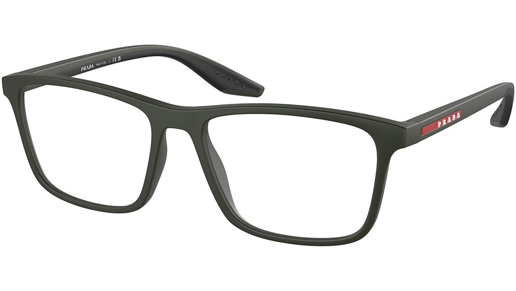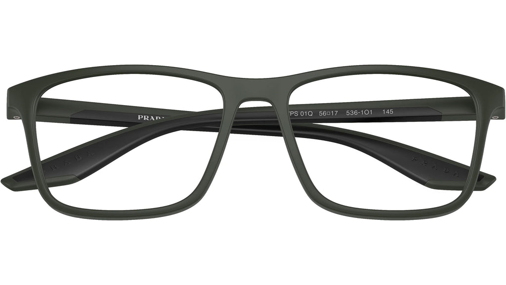 Occhiali da vista Prada Linea Rossa modello PS 01QV codice colore 5361O1 con montatura d-frame full rim in nylon color verde opaco e lenti demo. Rivenditore autorizzato Prada. Ogni prodotto Prada Linea Rossa viene consegnato con astuccio originale e accessori.