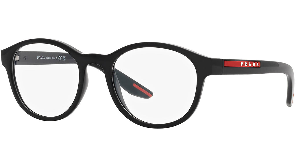 Occhiali da vista Prada Linea Rossa modello PS 07PV codice colore 1AB1O1 con montatura panto full rim in nylon color nero e lenti demo. Rivenditore autorizzato Prada. Ogni prodotto Prada Linea Rossa viene consegnato con astuccio originale e accessori.