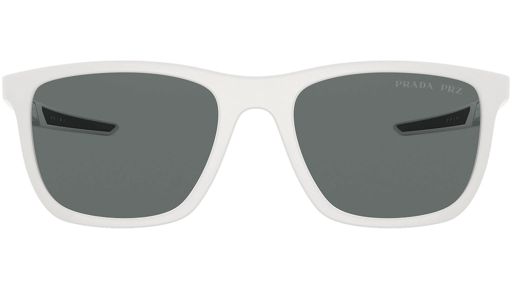 Occhiali da sole Prada Linea Rossa modello PS 10WS nella variante colore TWK02G bianco gommato con lenti color grigio scuro . Una perfetta fusione dei concetti di sportswear ed eleganza contemporanea: la linea di occhiali da sole Prada Linea Rossa declina in un moderno stile casual tutta la qualità e la raffinatezza artigianale della maison Prada.