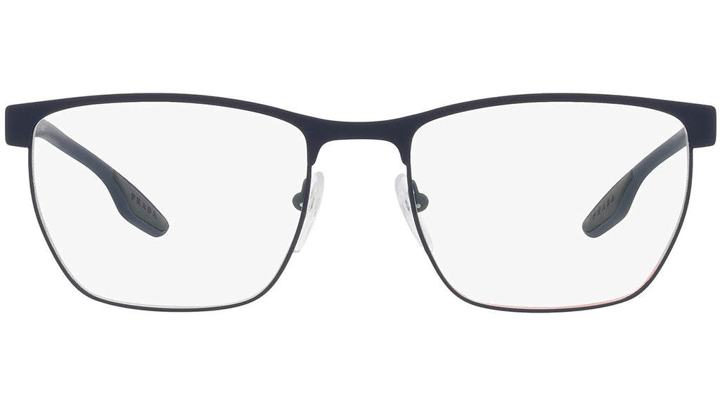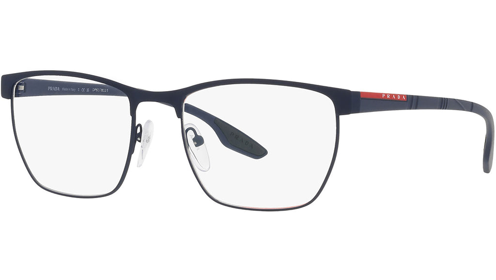 Occhiali da vista Prada Linea Rossa modello PS50LV variante colore blu gommato, codice colore TFY1O1. Nuove prospettive, sintesi perfetta di abbigliamento sportivo e eleganza contemporanea: gli occhiali della collezione Prada Linea Rossa esprimono il più perfetto casual style con la migliore qualita arigianale e la cura dei dettagli propri della maison Prada.