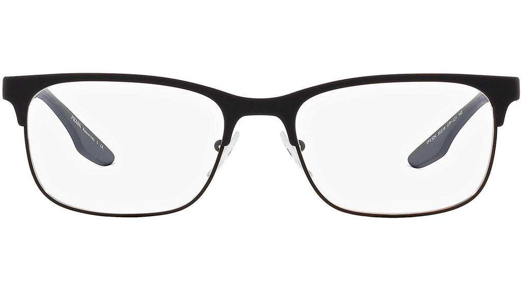 Occhiali da vista Prada Linea Rossa modello PS 52NV variante colore gomma blu e gomma nera, codice colore 07P1O1. Nuove prospettive, sintesi perfetta di abbigliamento sportivo e eleganza contemporanea: gli occhiali della collezione Prada Linea Rossa esprimono il più perfetto casual style con la migliore qualita arigianale e la cura dei dettagli propri della maison Prada.
