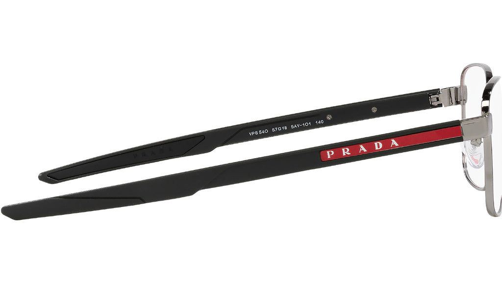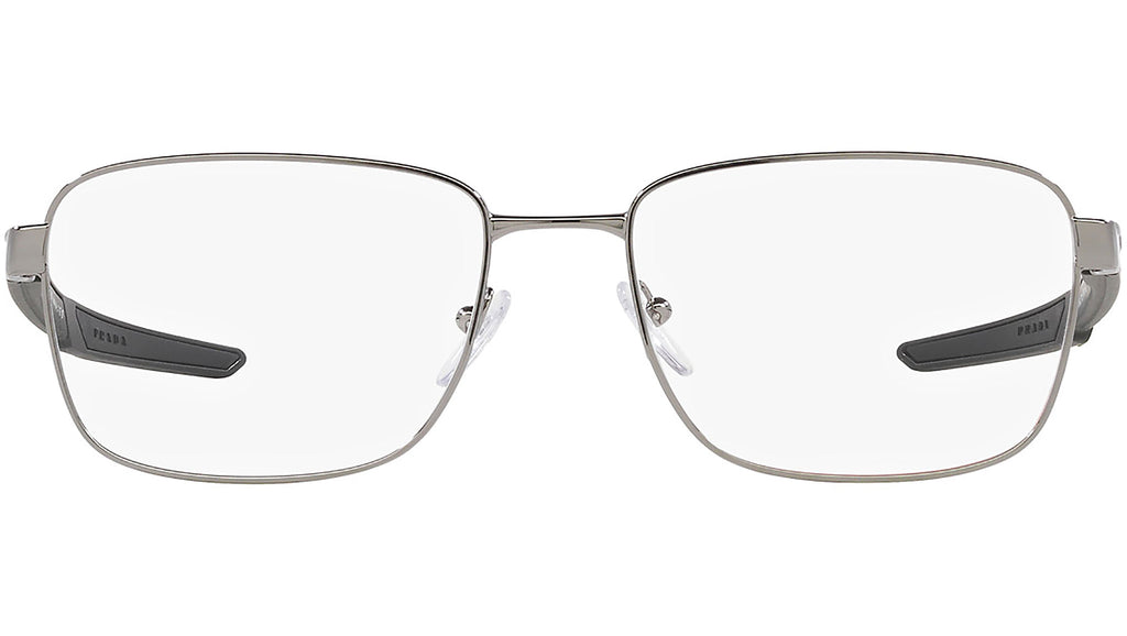Occhiali da vista Prada Linea Rossa modello PS 54OV codice colore 5AV1O1 con montatura d-frame full rim in metallo color canna di fucile e lenti demo. Rivenditore autorizzato Prada. Ogni prodotto Prada Linea Rossa viene consegnato con astuccio originale e accessori.