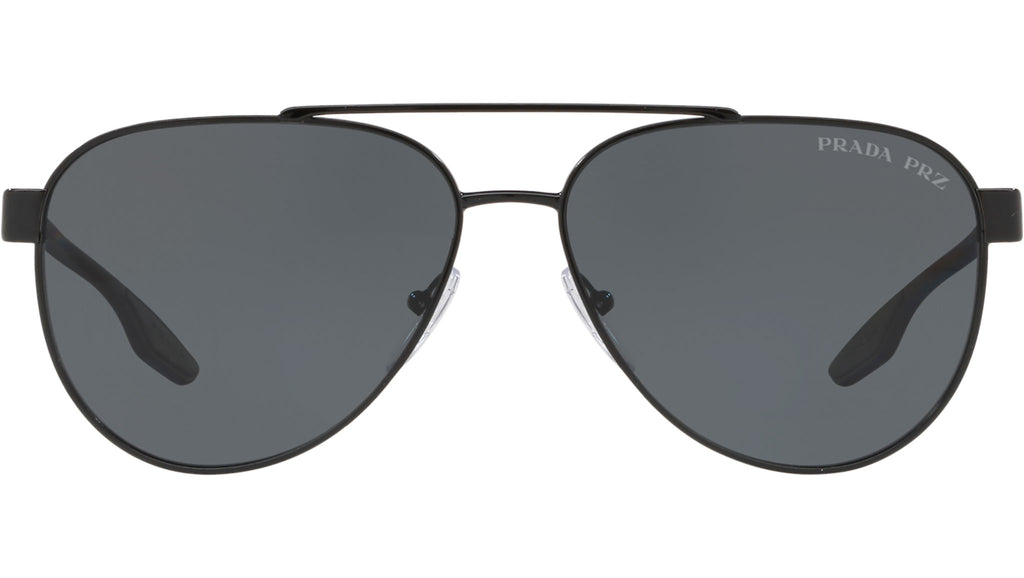 Prada Linea Rossa sunglasses model PS 54TS, black frame variant, color code 1AB5Z1 with polar grey lens. Prada Linea Rossa Sun Collection conveys an everyday casual style with all the quality and craftsmanship of the Prada brand.