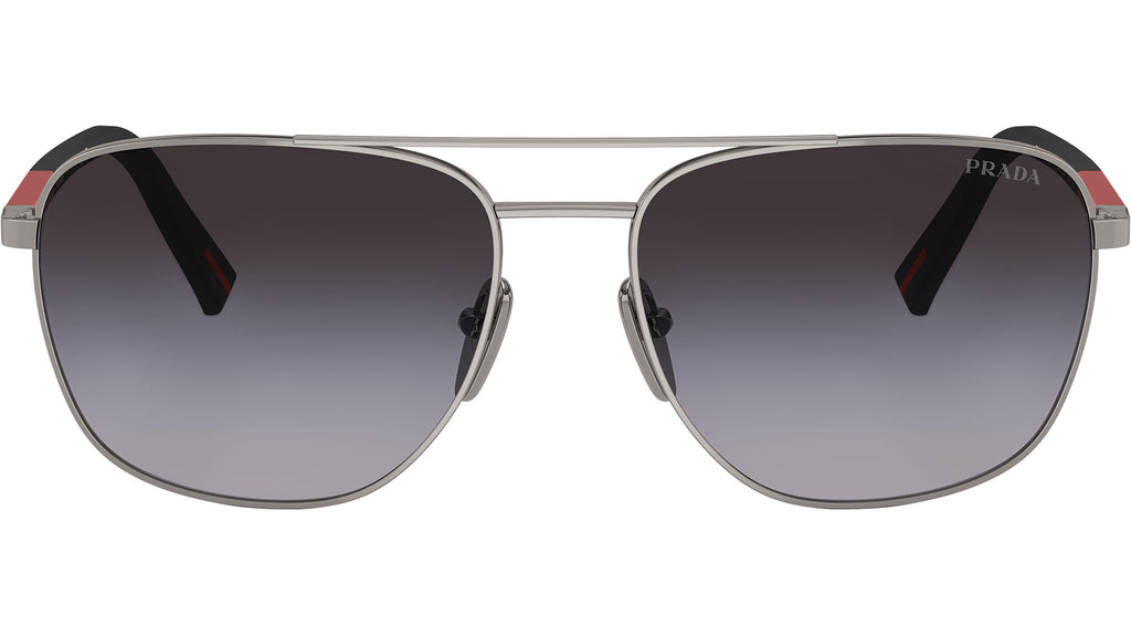 Occhiali da sole Prada Linea Rossa PS 54ZS 5AV09U uomo con montatura ovale in acciaio canna di fucile e lenti in poliammide color grigio sfumato. Naselli regolabili. Linea: Lifestyle. Codice modello: PS54ZS. Codice colore: 5AV09U. Made in Italy. Rivenditore autorizzato Prada Sport online. Gli occhiali vengono consegnati con custodia e accessori originali e sono coperti dalla garanzia ufficiale di 12 mesi del produttore.