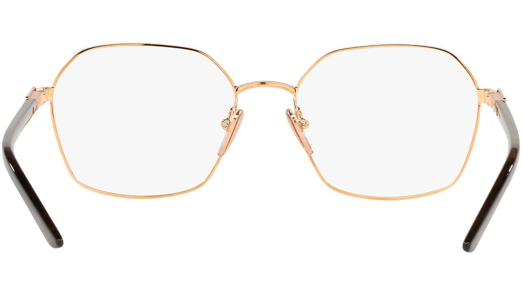 Occhiali da vista Prada modello PR 55YV variante colore oro rosa, codice colore SVF1O1. Prada rappresenta il vertice della tradizione e della moda Italiana. È uno dei brand più innovativi, prestigiosi e più riconosciuti nel mondo del fashion e degli accessori di lusso, massima espressione della cura per i dettagli, emblema di stile, nella sua raffinata interpretazione dei nuovi trend della moda internazionale.
