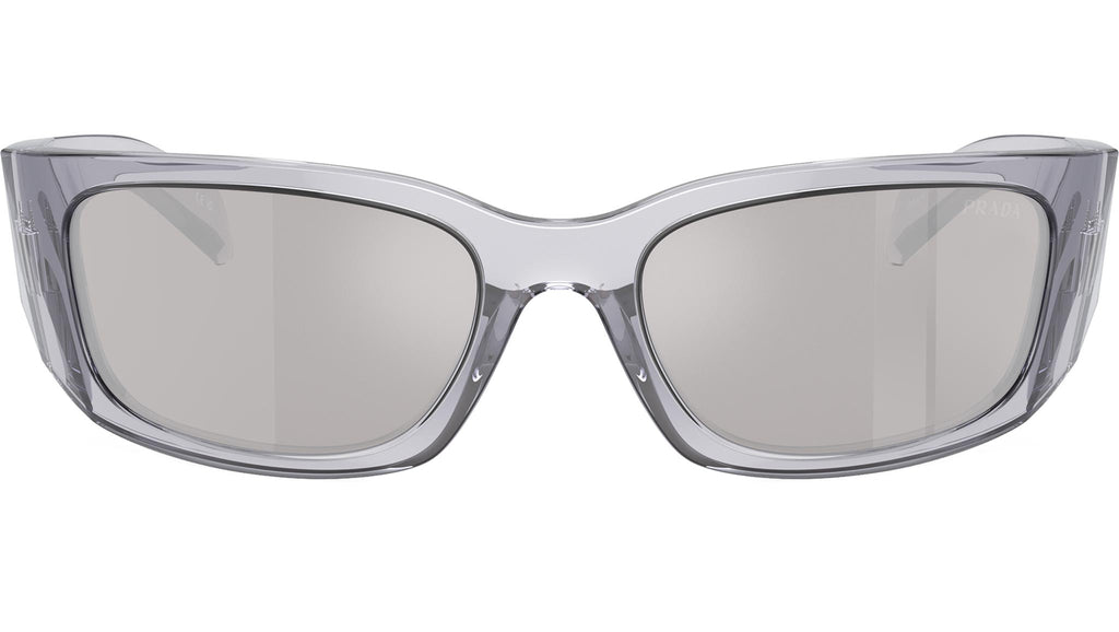 Occhiali da sole Prada uomo modello A19S con montatura grigio trasparente full rim in propionato e lenti grigio chiaro a specchio argento mask - base 7.5 cylindrical. Fit a ponte alto. Linea: Catwalk. Brand code: PRA19S. Codice colore: 12R2B0. Rivenditore autorizzato Prada. Ogni prodotto Prada viene consegnato con astuccio originale e accessori ed è coperto da garanzia del produttore di 12 mesi.