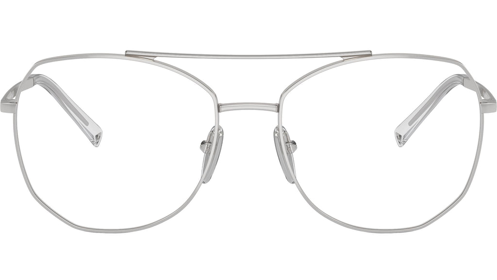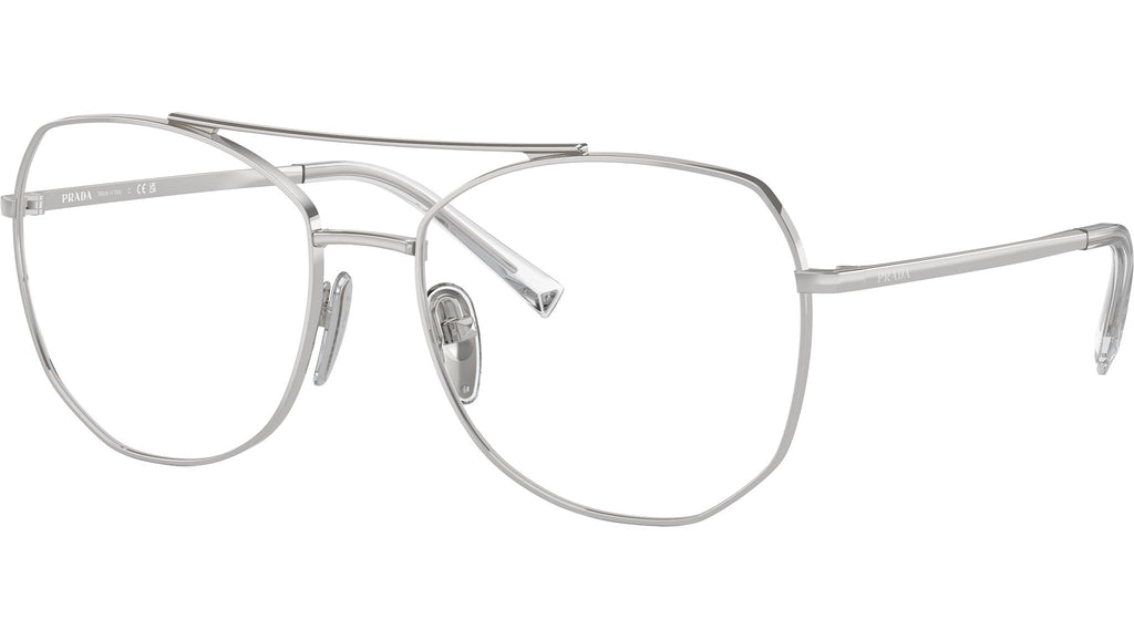 Occhiali da vista Prada donna modello A58V con montatura argento full rim in acciaio e lenti demo base 4. Fit con naselli regolabili. Linea: Signature. Brand code: PRA58V. Codice colore: 1BC1O1. Rivenditore autorizzato Prada. Ogni prodotto Prada viene consegnato con astuccio originale e accessori ed è coperto da garanzia del produttore di 12 mesi.