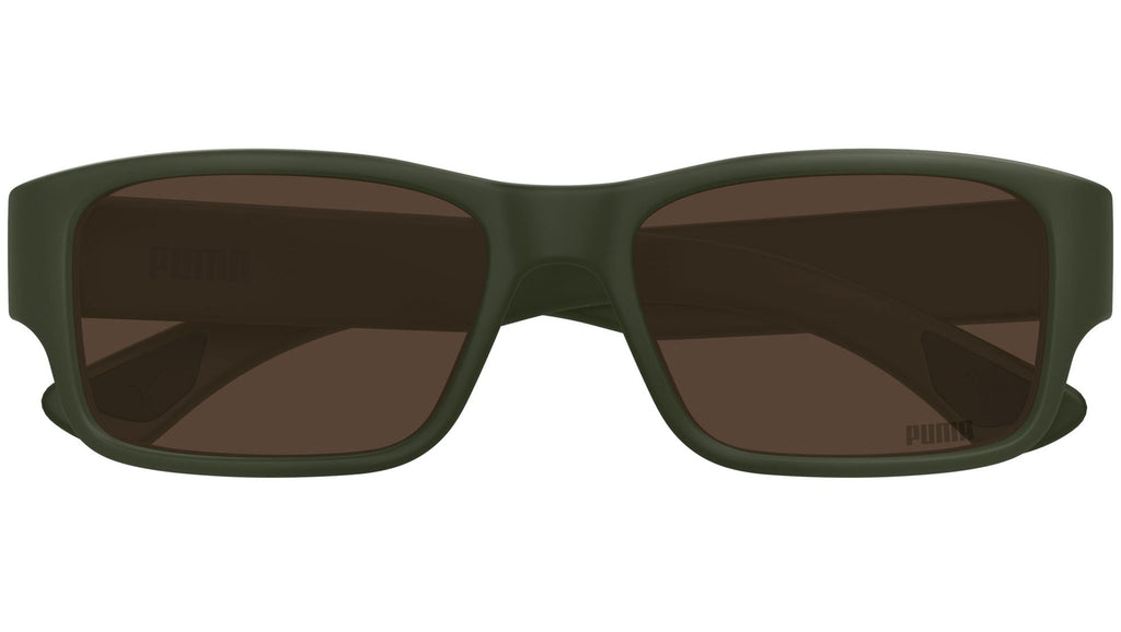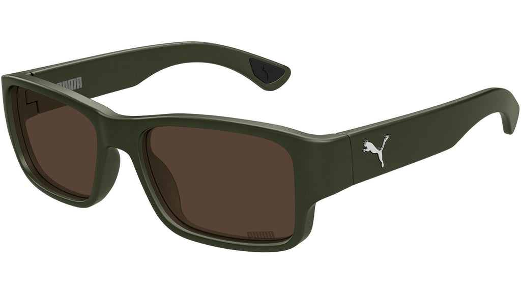 Occhiali da sole Puma PU0521S 004 uomo con montatura rettangolare in inietatto verde militare metallico opaco e lenti marrone rossastro solido. Linea: Sport. Codice modello: PU0521S. Codice colore: 004. Rivenditore autorizzato Puma online. Gli occhiali vengono consegnati con custodia e accessori originali e sono coperti dalla garanzia ufficiale di 12 mesi del produttore.