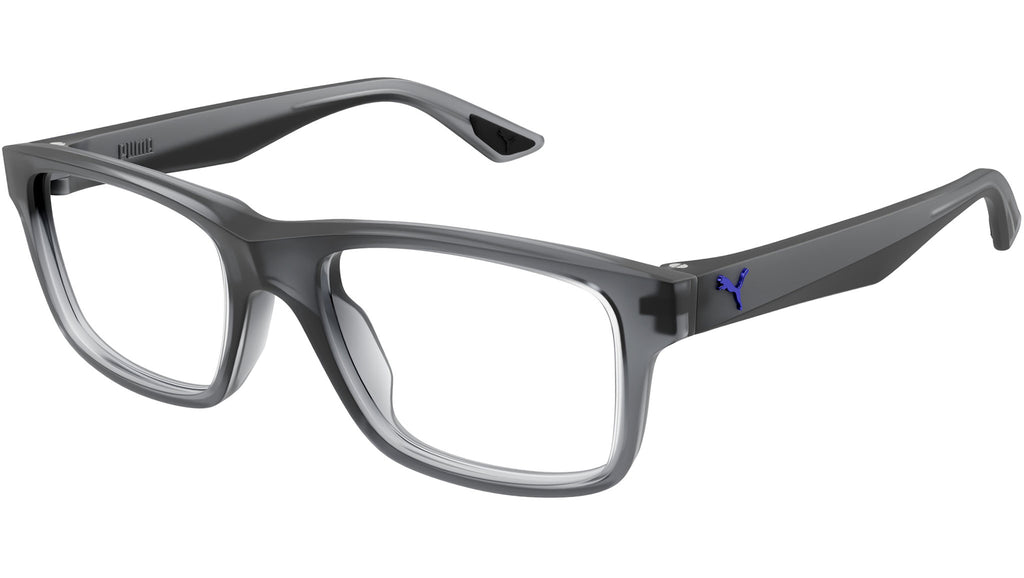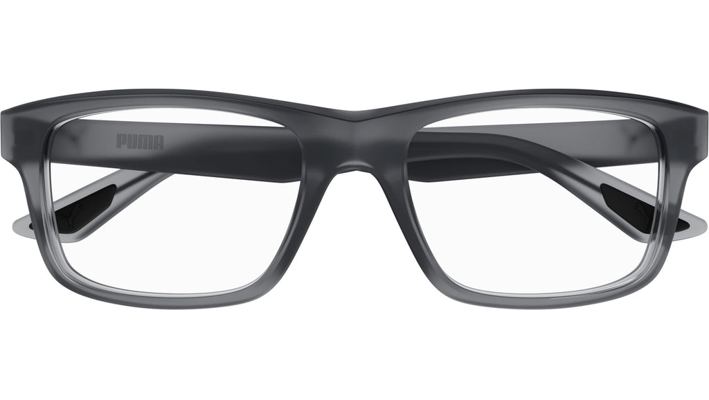 Occhiali da vista Puma Sport modello PU0405O variante colore 002 grigio scuro opaco trasparente con lenti demo.