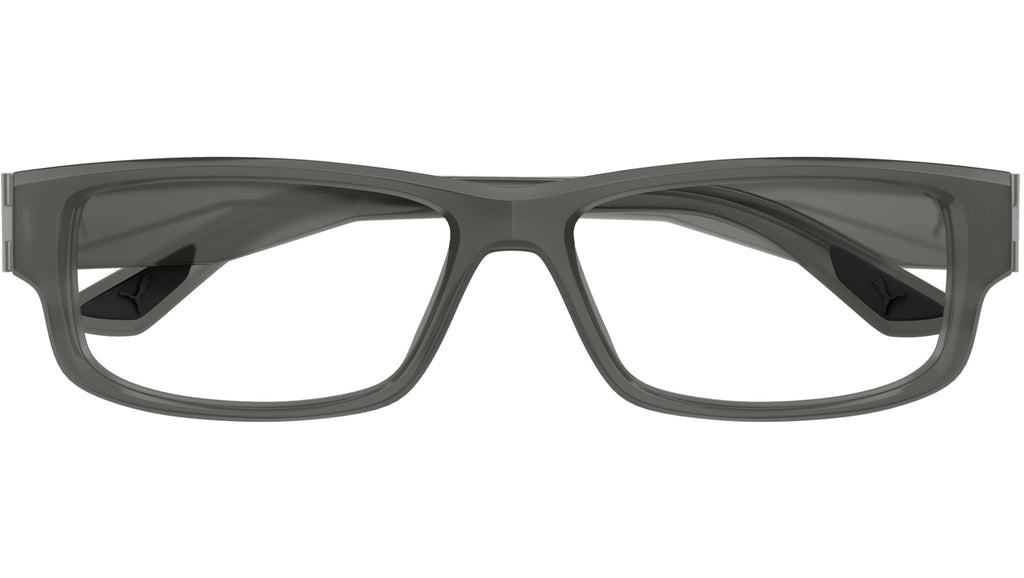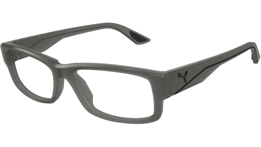 Occhiali da vista Puma Sport modello PU0440O variante colore 004 grigio trasparente lucido con lenti demo. Rivenditore autorizzato Puma online. Gli occhiali vengono consegnati con custodia e accessori originali e sono coperti dalla garanzia ufficiale di 12 mesi del produttore.