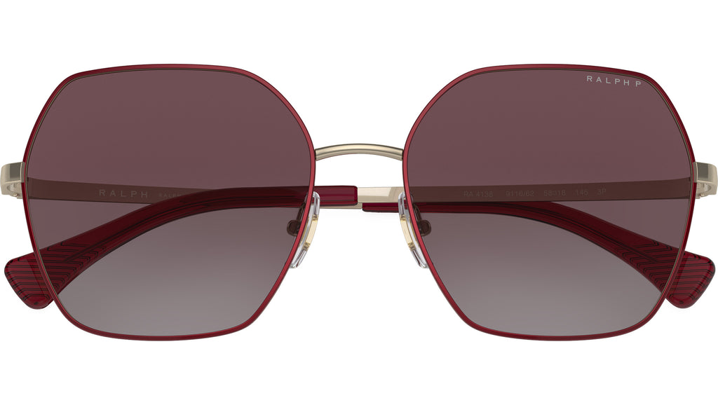 Occhiali da sole Ralph by Ralph Lauren donna modello 4138 full rim in metallo bordeaux con lenti color viola sfumato base 6. Naselli regolabili. Linea: Modern. Codice brand: 0RA4138. Codice colore: 911662. Rivenditore autorizzato online Ralph by Ralph Lauren. Ogni prodotto Ralph Lauren viene consegnato con astuccio originale e accessori ed è coperto da garanzia del produttore di 12 mesi.