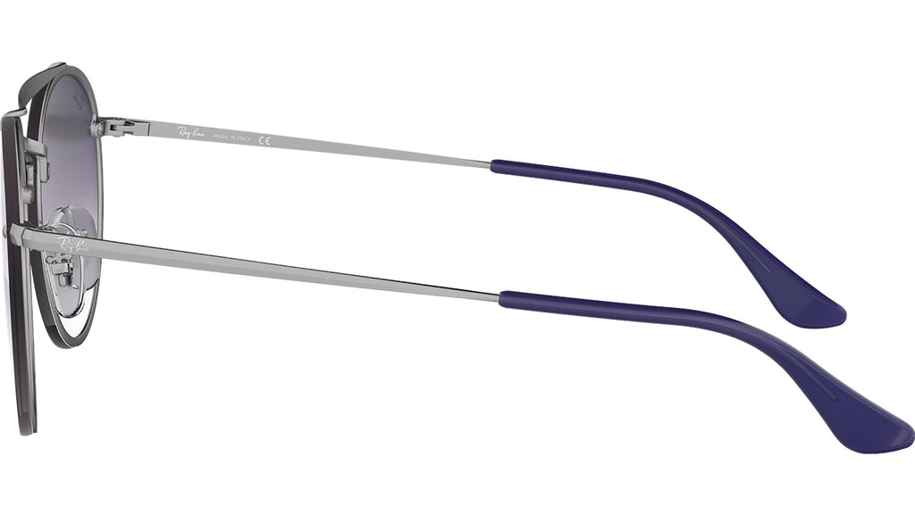 Occhiali da sole Ray-Ban Blaze Round Doublebridge modello RB3614N codice colore 91420U con montatura color argento semi rim in metallo e lenti in poliammide color sfumato viola / blu a specchio. Ray-Ban rappresenta lo stile senza tempo, la semplicità e la libertà di espressione. Come brand di occhiali leader da generazioni, Ray-Ban è all'avanguardia dei cambiamenti culturali e simboleggia l'individualità e la personalità dei tempi. Dal suo debutto, con l'iconico Aviator, creato originariamente per i piloti dell'aviazione degli Stati Uniti, Ray-Ban è stato indossato da celebrità e personaggi pubblici in tutto il mondo, diventando un simbolo di stile e raffinatezza.