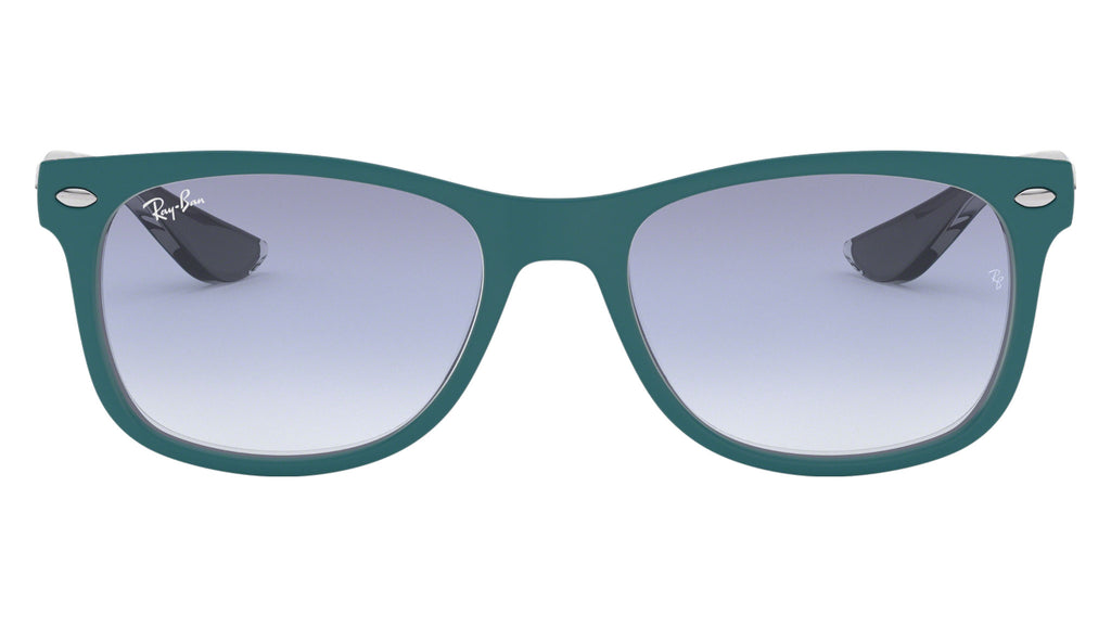 Occhiali da sole Ray-Ban Kids RJ9052S in nylon codice colore 703419 turchese opaco su grigio. Forma quadrata full rim con lenti azzurro chiaro a grigio sfumato. Con custodia originale e garanzia. Rivenditore autorizzato Ray-Ban.