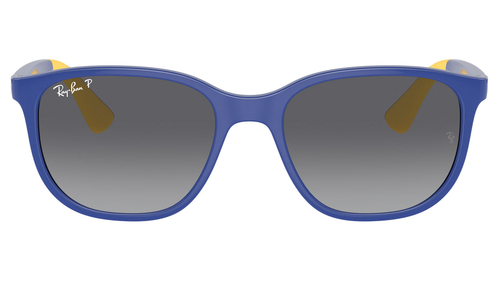 Occhiali da sole Ray-Ban Kids RJ9078S in iniettato codice colore 7132T3 azzurro su giallo. Forma quadrata unisex full rim con lenti grigio. Con custodia originale e garanzia. Rivenditore autorizzato Ray-Ban.