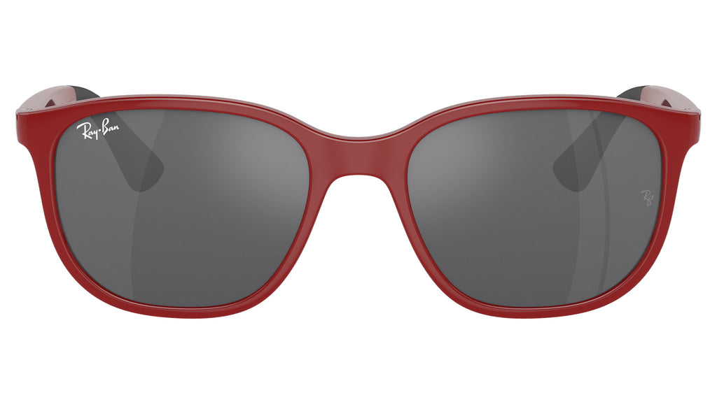 Occhiali da sole Ray-Ban Kids RJ9078S in iniettato codice colore 71506G rosso su nero. Forma quadrata unisex full rim con lenti argento / grigio. Con custodia originale e garanzia. Rivenditore autorizzato Ray-Ban.