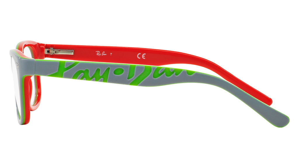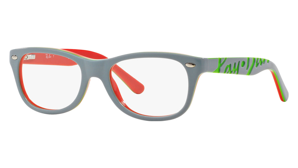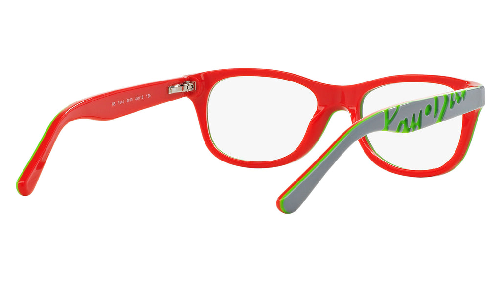 Occhiali da vista Ray-Ban Kids RY1544 color grigio lucido su corallo in acetato codice colore 3630. Forma quadrata full rim con lenti demo. Con custodia originale e garanzia. Rivenditore autorizzato Ray-Ban.