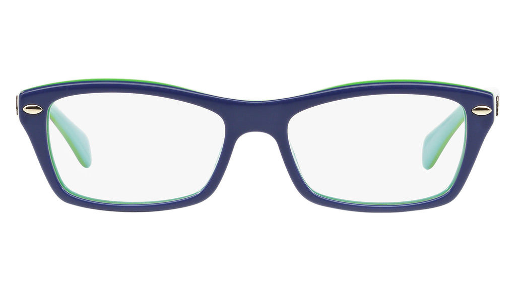 Occhiali da vista Ray-Ban Kids RY1550 color viola su verde azzurro in acetato codice colore 3657. Forma farfalla full rim con lenti demo. Con custodia originale e garanzia. Rivenditore autorizzato Ray-Ban.