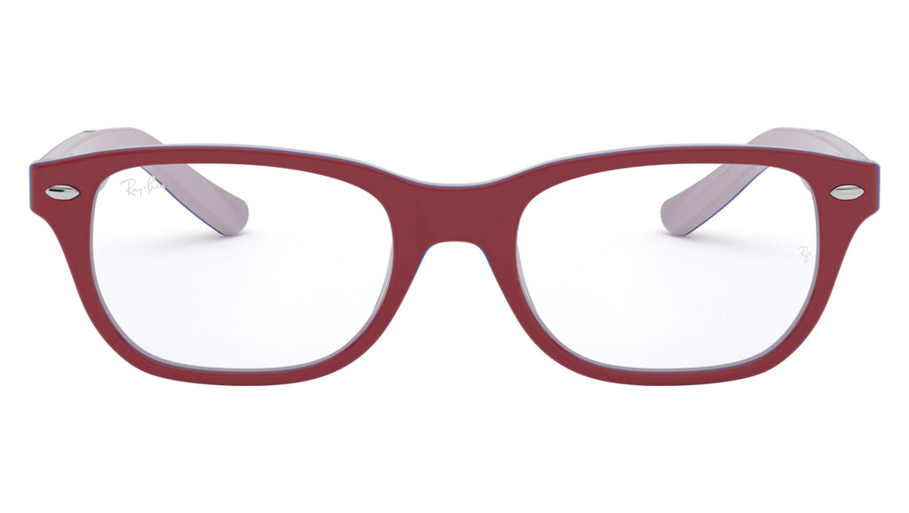 Occhiali da vista Ray-Ban Kids RY1555 color rosso lucido su grigio in acetato codice colore 3821. Forma quadrata full rim con lenti demo. Con custodia originale e garanzia. Rivenditore autorizzato Ray-Ban.