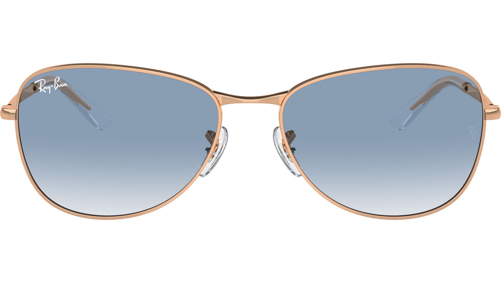 Occhiali da sole Ray-Ban modello RB3733 codice colore 92023F con montatura in metallo color oro rosa e lenti color trasparente e blu. Ray-Ban rappresenta lo stile senza tempo, la semplicità e la libertà di espressione. Come brand di occhiali leader da generazioni, Ray-Ban è all'avanguardia dei cambiamenti culturali e simboleggia l'individualità e la personalità dei tempi. Dal suo debutto, con l'iconico Aviator, creato originariamente per i piloti dell'aviazione degli Stati Uniti, Ray-Ban è stato indossato da celebrità e personaggi pubblici in tutto il mondo, diventando un simbolo di stile e raffinatezza.