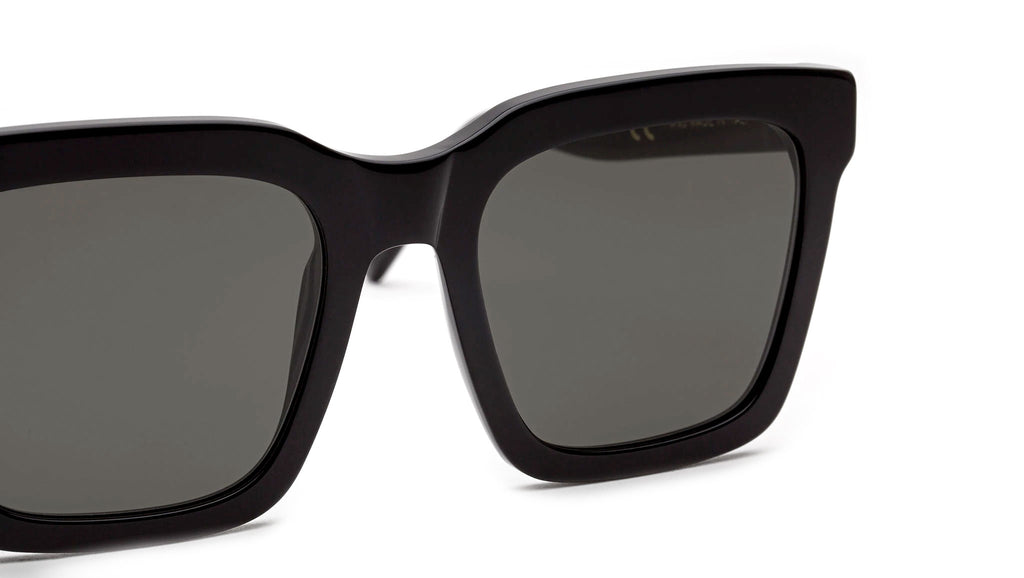 Aalto Black is a contemporary interpretation of a classic rectangular silhouette with thick acetate rims outlining its geometric front. The unique feature of this model is its vertical body, designed for a compact yet slightly oversized fit for both men and women. Aalto Black comes in shiny black acetate with black lenses by Zeiss. The box contains a semi-hard case and a cleaning cloth.