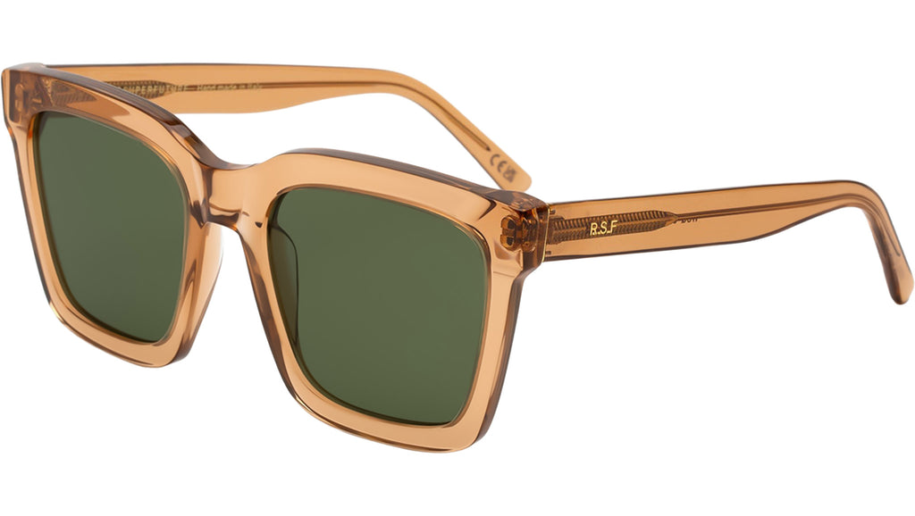 Aalto is a sharp frame characterized by oversized lenses with a strict geometric outline. The frame features sturdy rims encasing its iconic stretched lenses. This version of Aalto features a cola crystal acetate and deep green lenses. The box contains a semi-hard case and a cleaning cloth. The box contains a semi-hard case and a cleaning cloth. Sizes: R. Lens Width: 54 mm. Frame Front: Frame Side: 145 mm. Product Code Size R: WUQ.