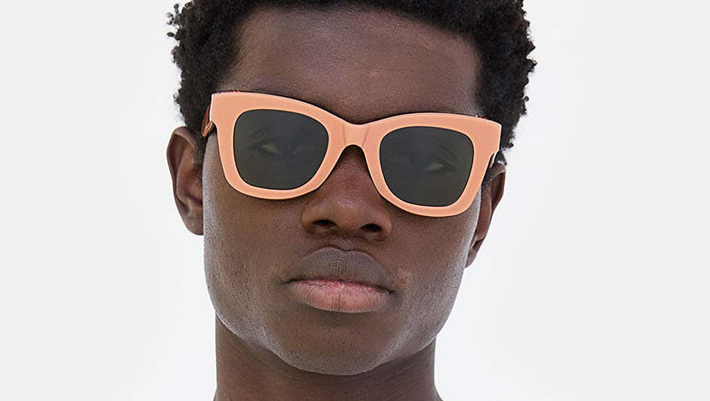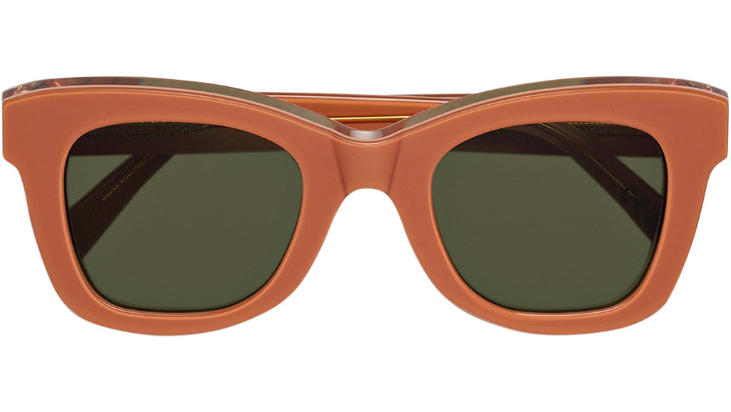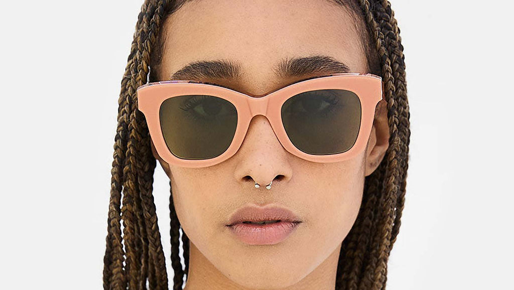 Altura is a unique oversized shape created by reimagining classic pieces with a bold, contemporary approach. The model features a thick acetate construction characterized by squared lenses that were stretched vertically to form an oversized silhouette. Carefully crafted rims and oversized lenses make this determined shape comfortable for everyday use. This version of the Altura comes in a pale pink finish with bottle green lenses. Sizes: R Lens Width: 50 mm. Frame Front: Frame Side: 145 mm. Product Code Size R: CXY