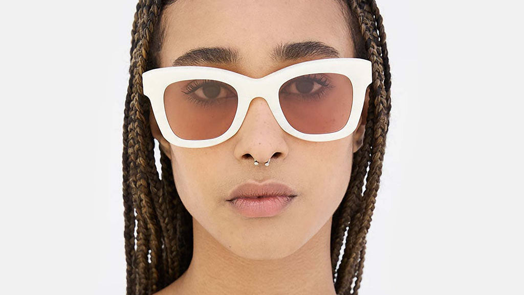 Altura is a unique oversized shape created by reimagining classic pieces with a bold, contemporary approach. The model features a thick acetate construction characterized by squared lenses that were stretched vertically to form an oversized silhouette. Carefully crafted rims and oversized lenses make this determined shape comfortable for everyday use. This version of the Altura comes in a soft white chalk finish with pink tinted lenses. Sizes: R Lens Width: 50 mm. Frame Front: Frame Side: 145 mm. Product Code Size R: U61