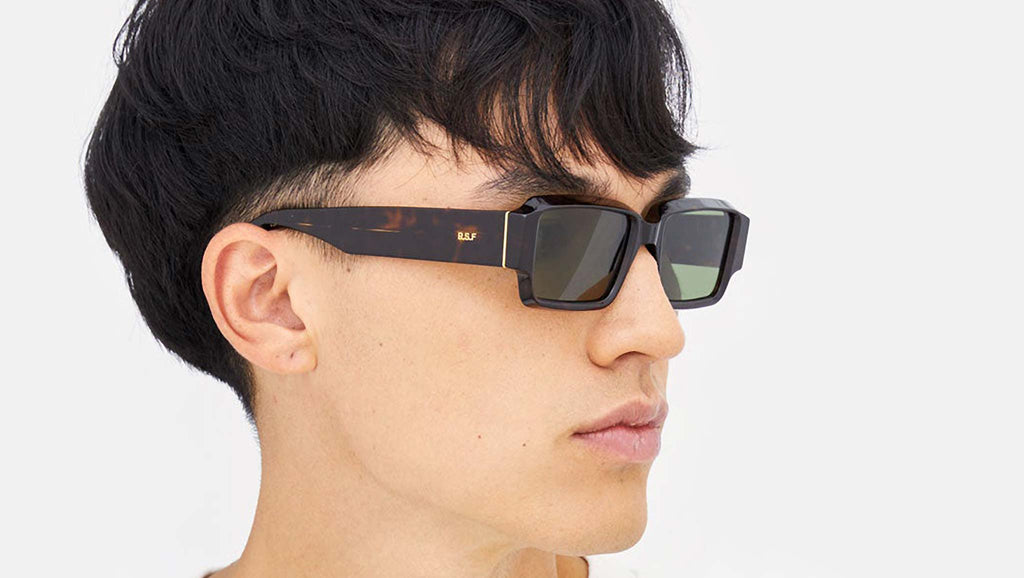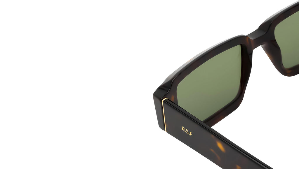 Iconic pieces of eyewear, reimagined for contemporary urban lifestyle: a 1970s silhouette has been redesigned to create Astro, a bold and playful shape. Astro is a squared frame with thick temples and a low nose-bridge, characterised by sculpted rims to form a distinctive slanted, architectural profile. Exceptional Italian acetate in a spotted 3627 Havana and bottle green lenses make this an exquisite high-end design. Sizes: R. Lens Width: 54 mm. Frame Front: Frame Side: 145 mm. Product Code Size R: OPE.