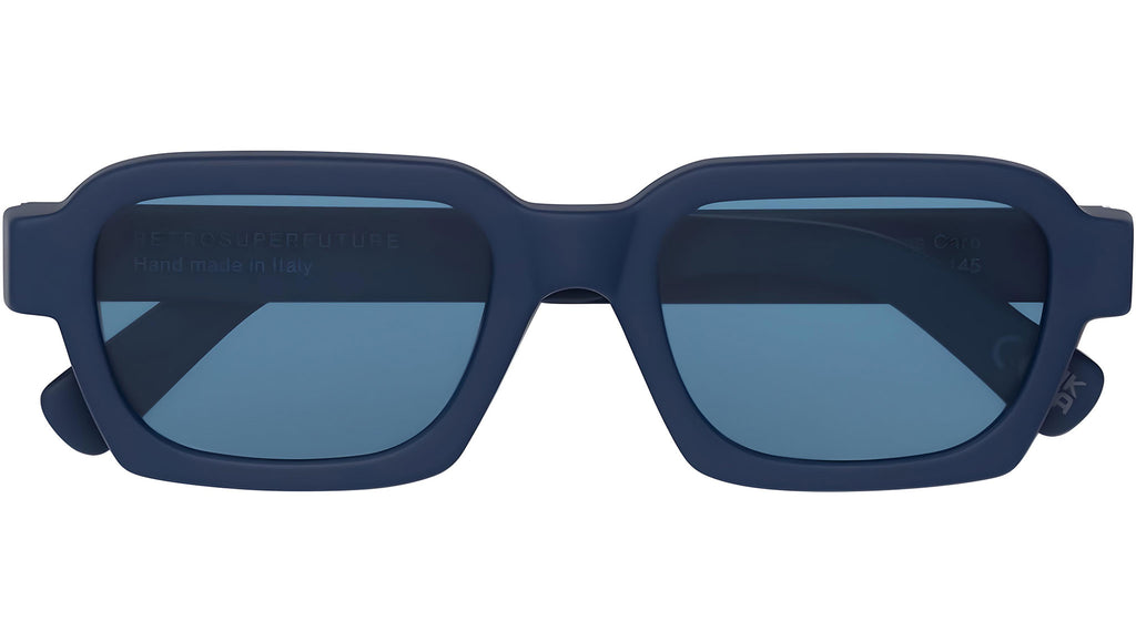 Caro's sleek, edgy style gets a new line-up, composed of deep matte colors for the endless sunset vibes. The classic grunge reference is transformed into a colourful and soft matte palette, with its iconic design, sturdy acetate frame and square temples. This version of the Caro is available in an ultra-soft deep blue matte with matching faded lenses. Sizes: R. Lens Width: 52 mm. Frame Front: Frame Side: 145 mm. Product Code Size R: 4VY.