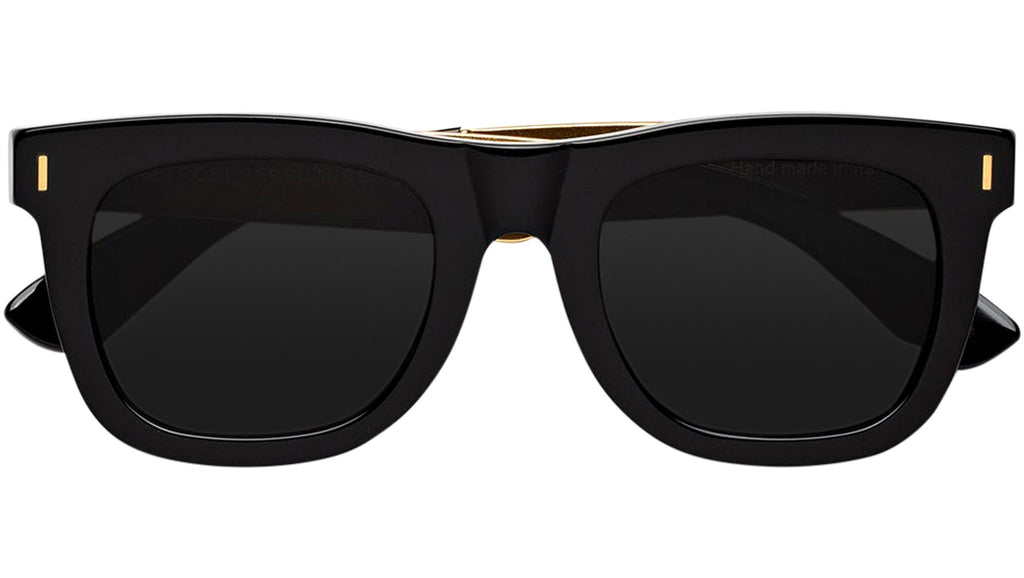 Ten years after being first released, RSF celebrates its iconic Francis series of eyewear. This version of the Ciccio has been updated with sharp detailing to match the contemporary aesthetic sensibility. Pure and sturdy metal temples – the distinctive Francis feature – elevate the model’s compact acetate construction. This design pairs shiny black acetate with rich, shiny gold metal. RSF’s X logo is inscribed in the temples, celebrating the 10 years of the Francis design. Sizes: R Lens Width: 50 mm. Frame Front: 143 mm. Frame Side: 145 mm. Product Code Size R: ZGL