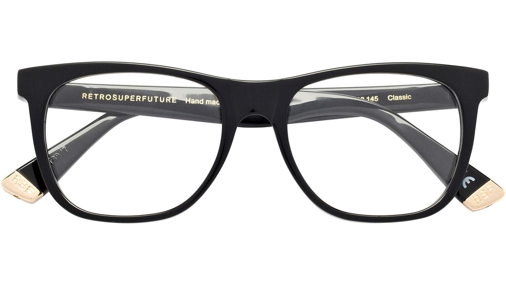 Classic Optical is a reinterpretation of RSF’s iconic silhouette for an all-day-everyday use. This timeless design features wide lenses and softly rounded curves around the nose-bridge and temples. Thismodel has been fitted for daily optical use and comes in shiny black acetate. Prescription lenses not included. The box contains a hard case and a cleaning cloth.