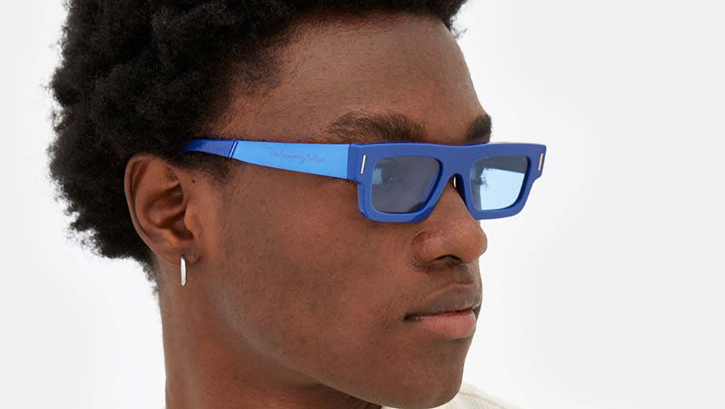 This version of Colpo was reinterpreted with the iconic Francis touch – the signature full-metal temples get a chromed color finish, elevating the model’s acetate construction. First released 10 years ago, the Francis series has been given a colourful twist for a fresh take on contemporary style with Colpo’s low-riding profile and sharp geometries. This version features a fresh tone-on-tone blue acetate, chromed blue metal finish with matching lenses. Sizes: R Lens Width: 52 mm. Frame Front: Frame Side: 145 mm. Product Code Size R: YYX