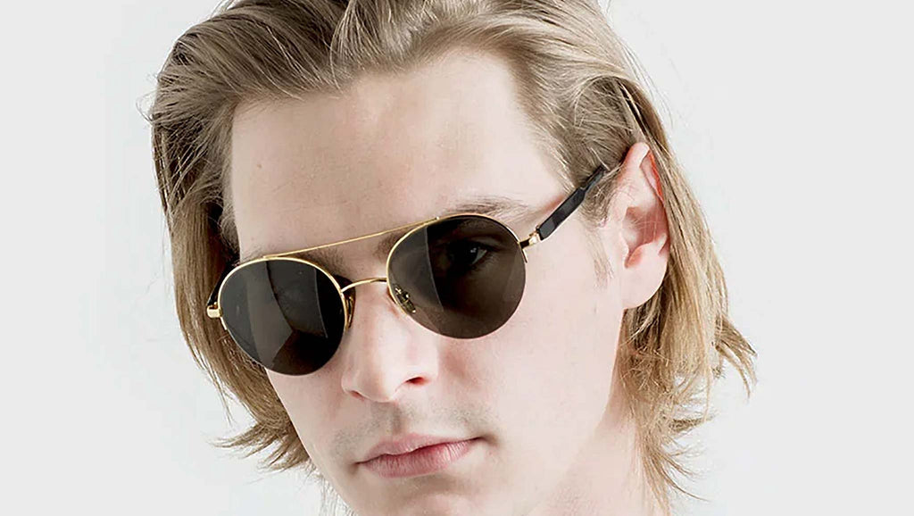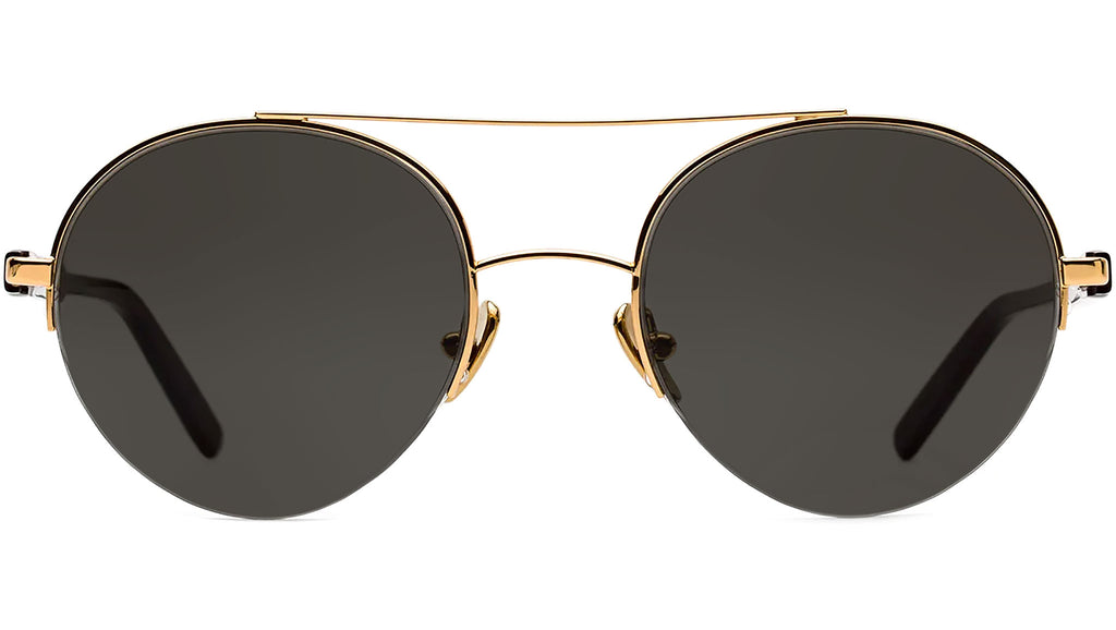Cooper Black Gold is a metal silhouette characterized by a rounded design, with a sleek, slender yet sturdy metallic structure that encases the upper part of the lenses. All the metalwork has been obtained through custom moulds in order to ensure high technical qualities of the frame. Black lenses by ZEISS. The box contains a semi-hard case and a cleaning cloth.