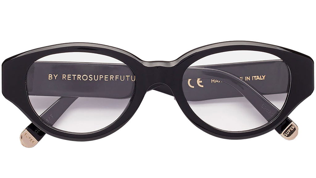 Retrosuperfuture Drew Mama Optical takes an absolute icon of SUPER’s designs, reinterpreting it for optical use. The model is characterized by thick temple tips and oversized, oval lenses crafted from shiny black acetate. Prescription lenses not included. The box contains a hard case and a cleaning cloth. Sizes: R Lens Width: 51 mm. Frame Front: 145 mm. Frame Side: 145 mm. Product Code Size R: HDD