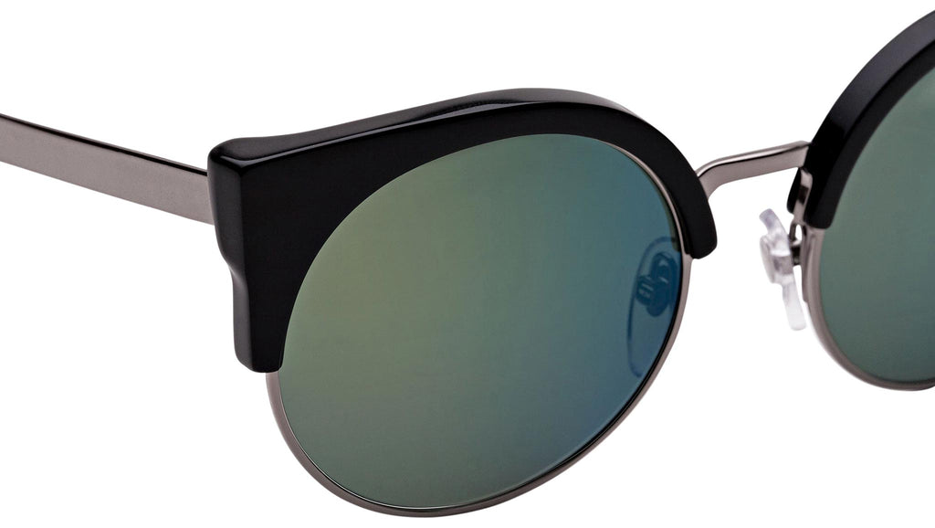 Developed for NWO collection, Ilaria Patrol features a specific mix of green, black and grey tones. The body of the frame — a combination of acetate and metal components — was rendered in a matte black hue, while its petrol-colored lenses by ZEISS sport a soft mirrored coating. The box contains a semi-hard case and a cleaning cloth. Size: R Lens Width: 53mm Frame Front: 133mm Frame Side: 145mm Product Code Size R: PBG